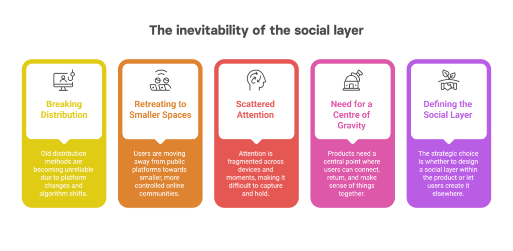 Because in the current environment, one thing’s more or less guaranteed: if you don’t design your social layer, your users will design one anyway. Just not with you in the room.