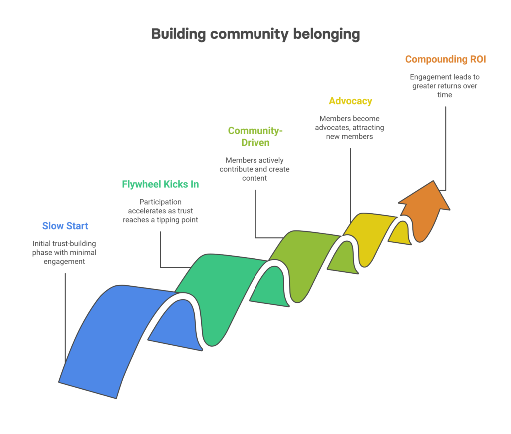 Members respond to one another, not just to the brand. New voices attract more voices. Content stops being for the community and becomes from the community. Belonging enters compounding mode.