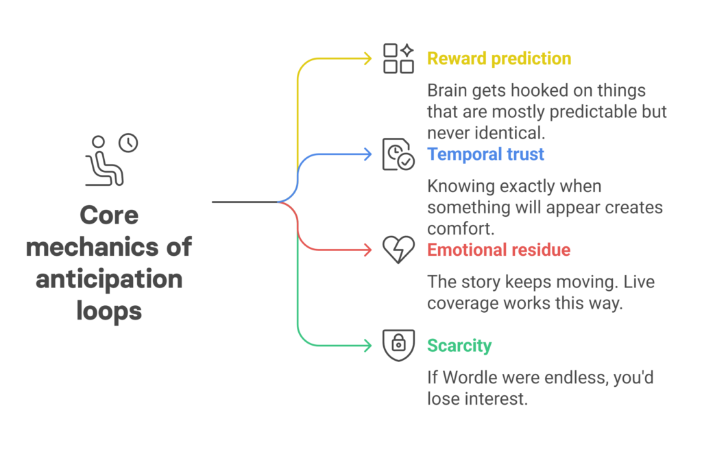 You remember how satisfying yesterday’s Wordle felt. The calm of your morning Espresso. The pulse of following that live blog. Your brain starts looking forward to it again before you even realize it. Waiting turns into wanting. Wanting builds loyalty.