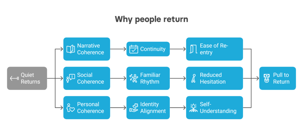 If you take that view, return behaviour becomes less about repetition or habit and more about coherence. Not in a technical sense but in a human one.